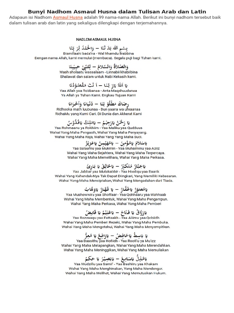 Nadhom asmaul teks asmaul husna latin 99 asmaul husna :