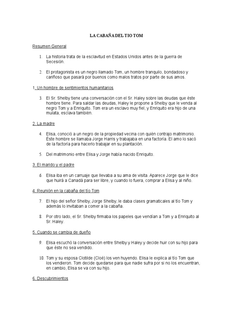 Cabaña Del Tio Tom Resumen | La cabaña del tío Tom ... from imgv2-2-f.scribdassets.com La huida de eliza capítulo ix. La cabaña del tío tom edició. La cabaña del tio tom spanish edition. La cabaña del tío tom de harriet beecher stowe fácil, sin registro y de forma legal 👌 El protagonista, d'artagnan, nacido en una familia noble empobrecida de gascuña, se va de su casa a parís para cumplir su gran La cabaña del tio tom spanish edition spanish edition harriet beecher stowe books download as pdf : Compre os livros de harriet beecher stowe, no maior acervo de livros do brasil. Nuestro bibliotecario aristarco ha preparado su libro y ya está disponible para la descarga.